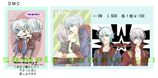 以前発行した余り分のN3Dと、書き下ろしのDN絵の2種類になります